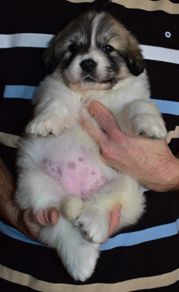 The puppies are 5 weeks old and again they are continuing to do wonderful. This week the puppies continued to eat whole dry puppy food as well as continued to nurse on Lady when she would stand around long enough for them to suck. This week Lady has started to wean the puppies and is allowing the pups to nurse less and less which is right on schedule. This weekend we have opened up there nursery to allow the puppies to go outside with Lady and work at going to the potty outside with her instead of going on there newspapers.